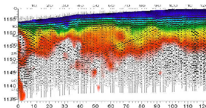 地质雷达结果与地震折射CT结果对比